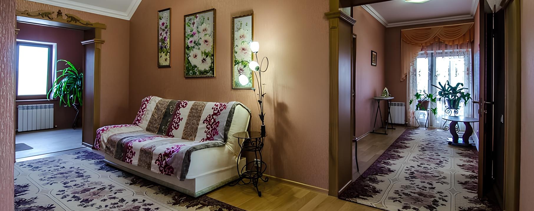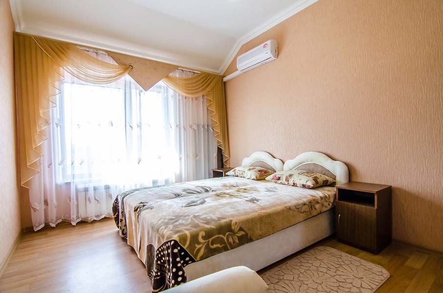 Мы предоставляем уютные большие 1-2-3-х комнатные номера категории люкс и апартаменты площадью от 41.6 до 118.2 квадратных метров, рассчитанные на свободное размещение 4-9 человек.