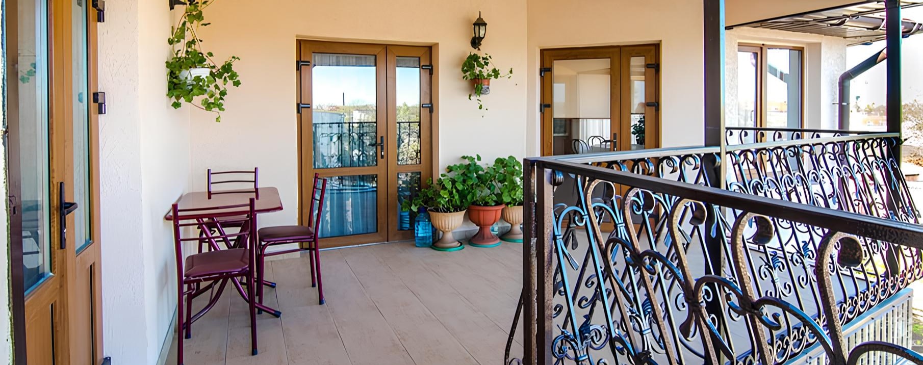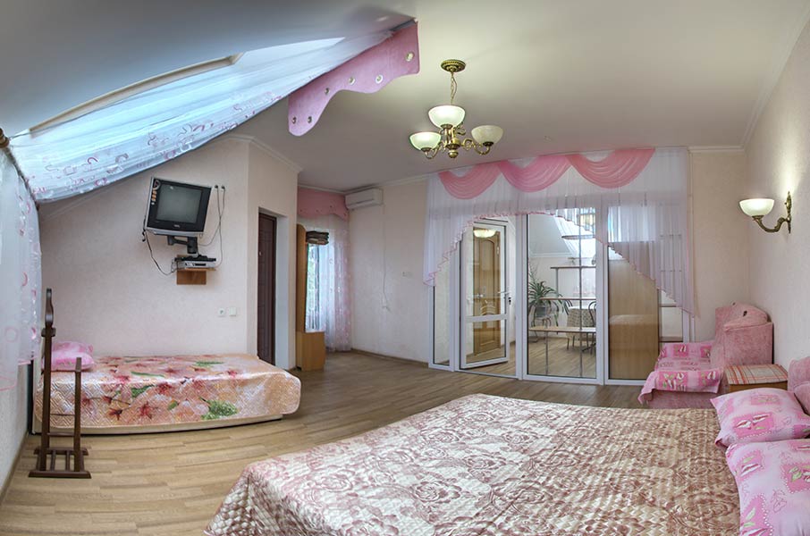 Мы предлагаем выбрать подходящий вариант размещения в нашем гостевом доме. Отдыхающие размещаются в двух зданиях (2 и 3 этажа) с террасами соединяющимися кованой винтовой лестницей, увитой розами. Планировка позволяет каждой семье иметь личное пространство и, в то же время, при желании, общаться с другими гостями.