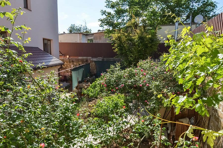 Часть ограждения с зеленой стеной из Тыкомы и винограда